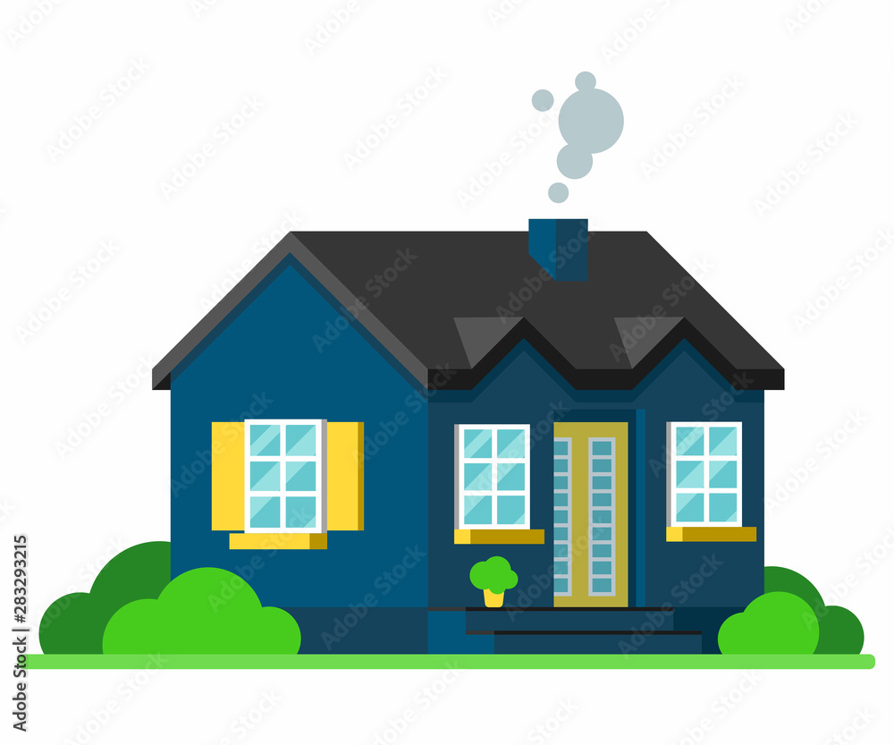 Cartoon Blue House With Yellow Shutters And A Door Flat Vector Illustration Stock Illustration Adobe Stock